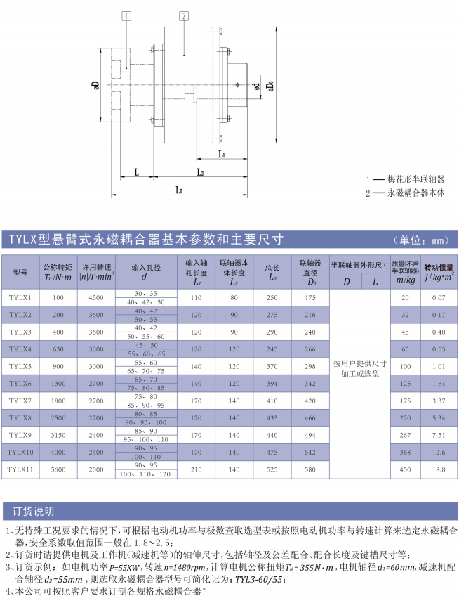 十、TYLX型永磁耦合聯軸器結構圖及主要參數